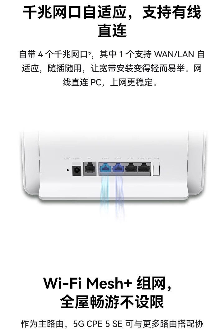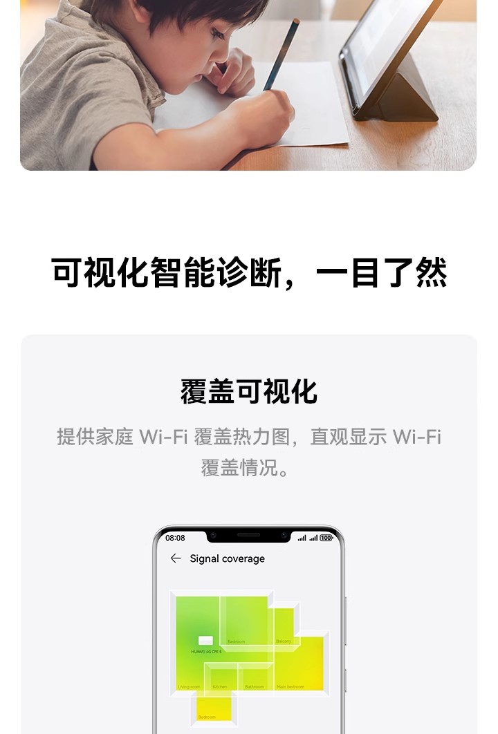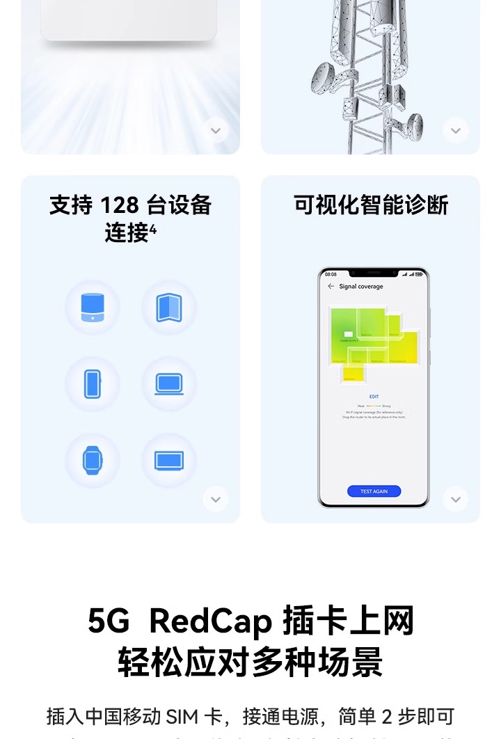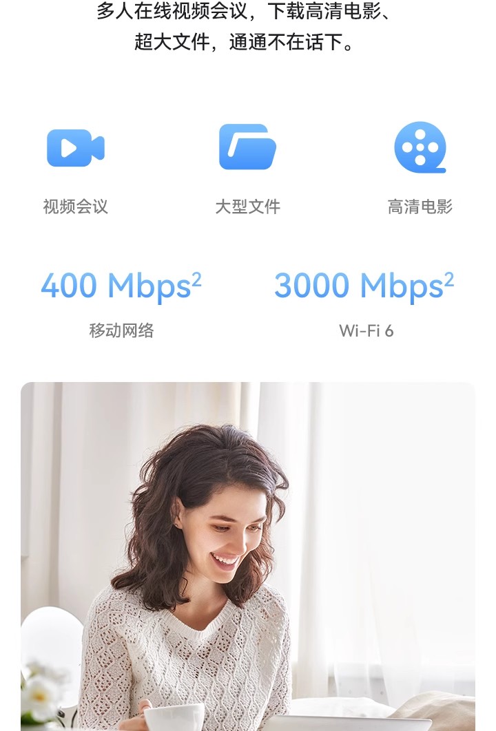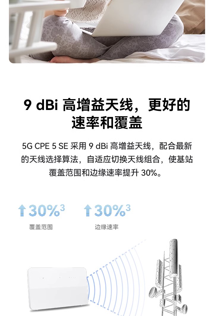 支持4G全网通+移动5G,Wi-Fi 6 疾速体验,高增益智能天线,智能加速 *受运营商管控要求,新疆、西藏、云南地区将限制流量卡使用,不支持购买