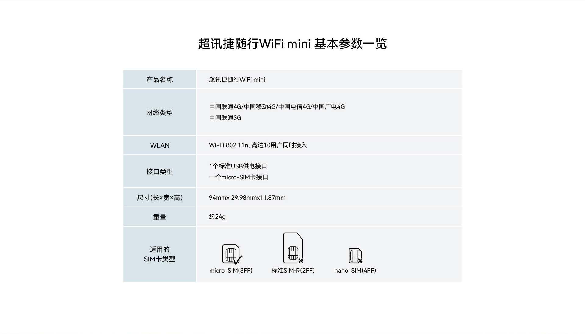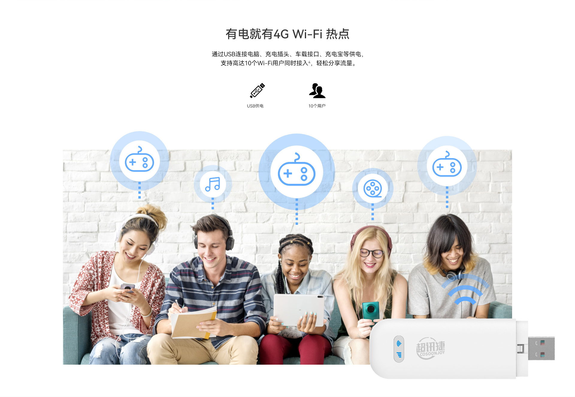 4G全网通,即插即用,有电就有Wi-Fi,更多使用场景 *受运营商管控要求,新疆、西藏、云南地区将限制流量卡使用,不支持购买。流量卡需实名认证后使用,如有问题咨询小程序客服。