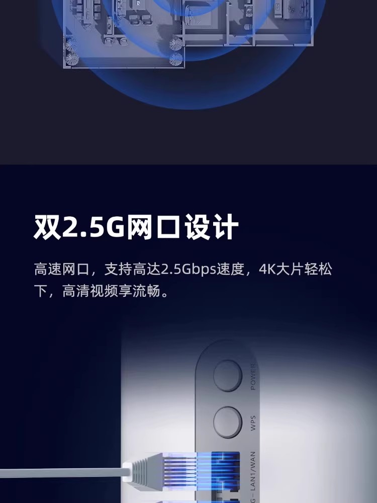 2.4GHz理论协商速率为688Mbps;5GHz理论协商速率为2882Mbps;理论协商速率总和3570Mbps